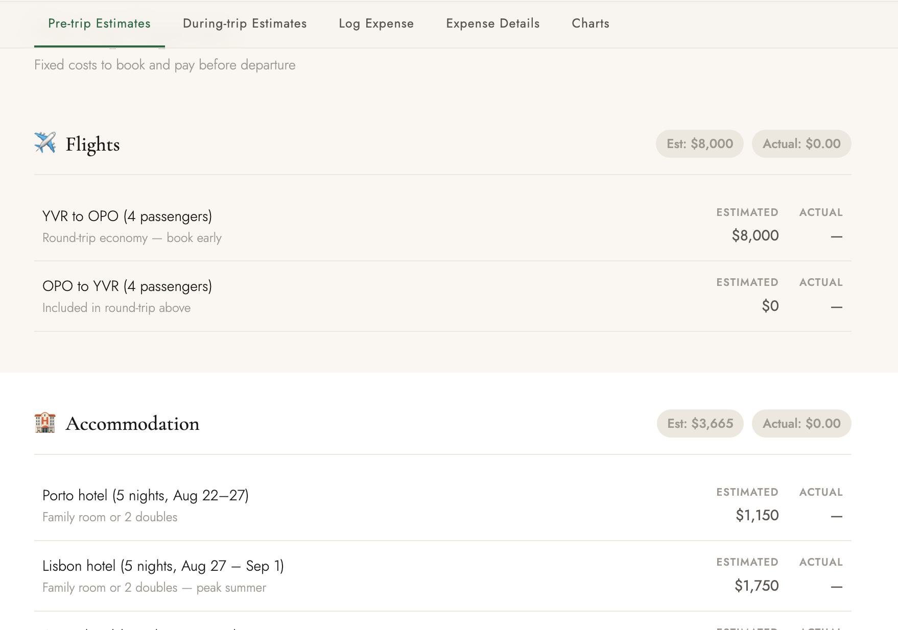 You see, the budget estimated by Claude is pretty steep ๐ฅ It estimated that for the family of 4, 14 days of travel spanning 3 cities in Portugal would cost 17,000 CAD ๐ต That’s way more money than what we’re willing to spend. So if I were to present this to my family right now, it would give them even more reason not to go ๐ฅ